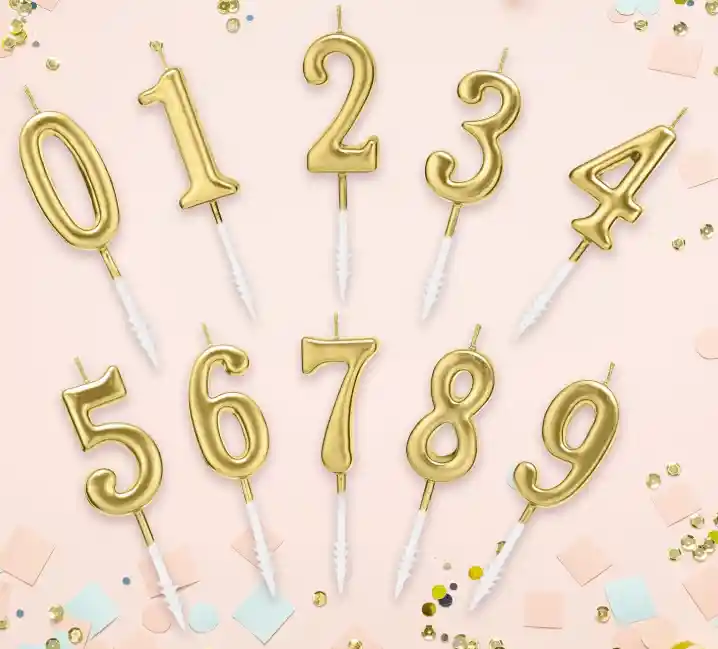 VELA NUMERICA DE CUMPLEAÑOS COLOR DORADO O PLATEADO. ESCOGE EL NUMERO QUE DESEES DEL 0 AL 9