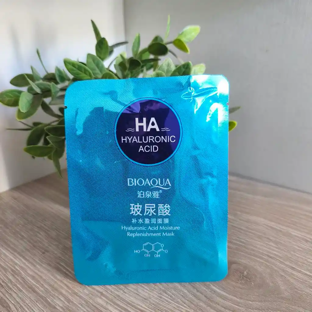 Mascarilla tipo velo de ácido hialuronico, ayuda a hidratar y suavizar la piel, controla el exceso de grasa en el rostro, ayuda a minimizar los poros, aporta elasticidad, firmeza y nutrición. como usar: ponla mascarilla en la piel totalmente limpia, déjala actuar por 20 minutos y retiraron abundante agua.