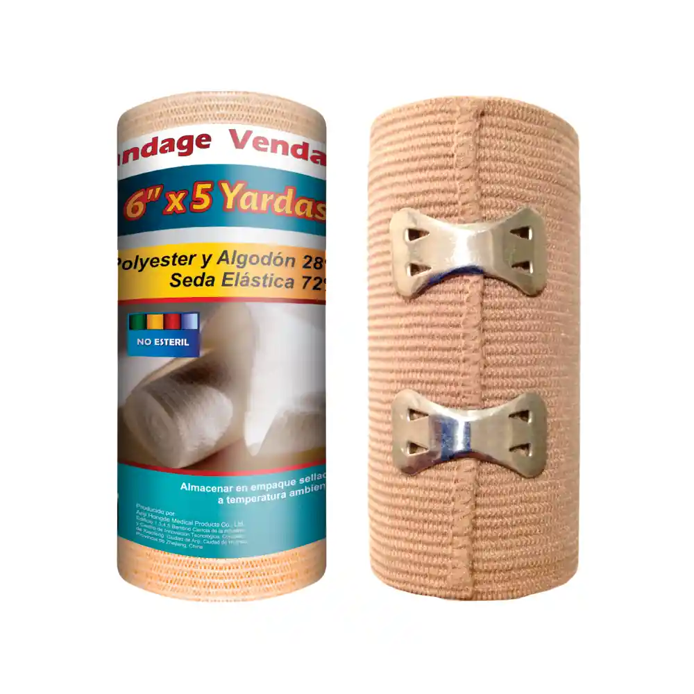 Venda Elástica de color piel, en material tejido de poliester con hilos algodón con seda elástica.