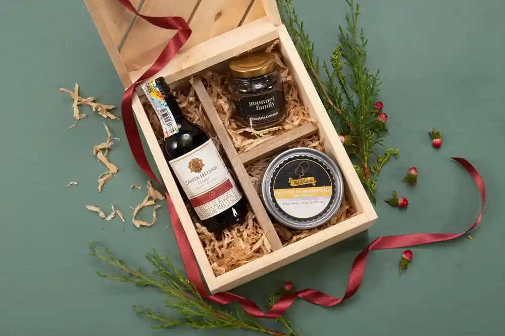 Piba de vino (187 ml) acompañada de galletas de mantequilla (10 u. aprox) y chocolate crocante (40g aprox)