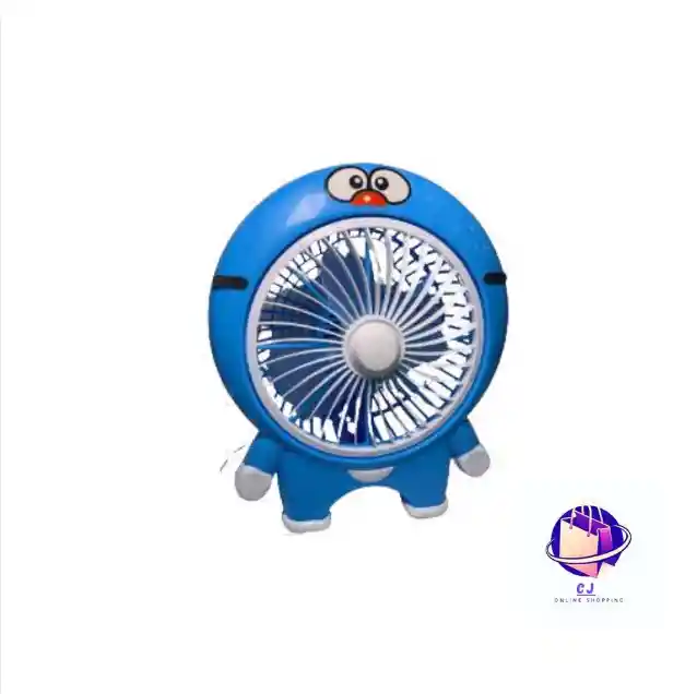 Ventilador portátil con diseño de muñeco azul, compacto y ligero. Ideal para refrescarte en cualquier lugar, fácil de transportar y práctico para uso personal o escritorio.