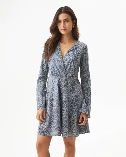 Mini Dress. Corto Para Mujer Silueta Amplia Con Animal Print y Detalles de Lurex. Escote Cruzado Que Favorece y Estiliza el Busto Mangas Tipo Campana Que Proporcionan Aire Bohemio Chic de Moda Corte en Cintura Que Marca Figura Falda Amplia Con Forro Interno Que se Mueve Bonito al Caminar. Hilos de Lurex Que Proporcionan Brillo Sutil Que Atrapa la Luz Para Toque Festivo Pero Elegante. Ean- 779G004Azu164020 Plu- 1111133181593.