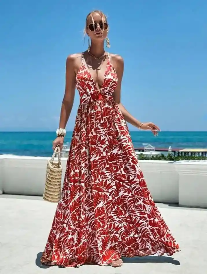 Vestido Con Estampado De Plantas De Manga Mariposa Vinculado Con Aro