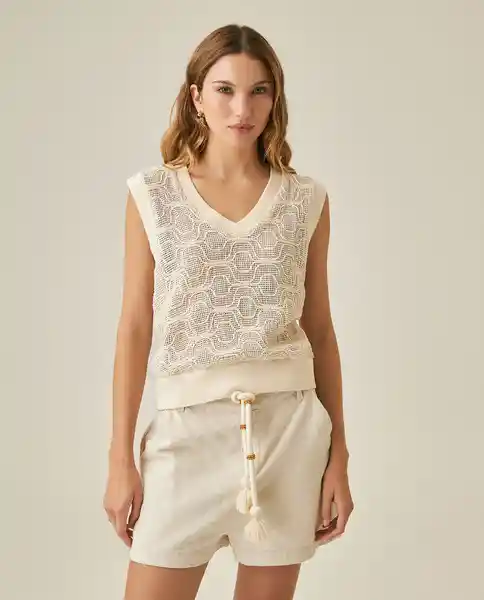 Moda Femenina Tipo Chaleco Silueta Recta Escote en V Manga Sisa en Algodón 100%. Cuello Sisas y Fajón en Complemento Tejido. Tela Con Efecto Tejido. Textura Casi Transparente. Construcción Tipo Chaleco Con Transparencia. Silueta Recta. Ean- 711H009Cru125202 Plu- 1111133245554.