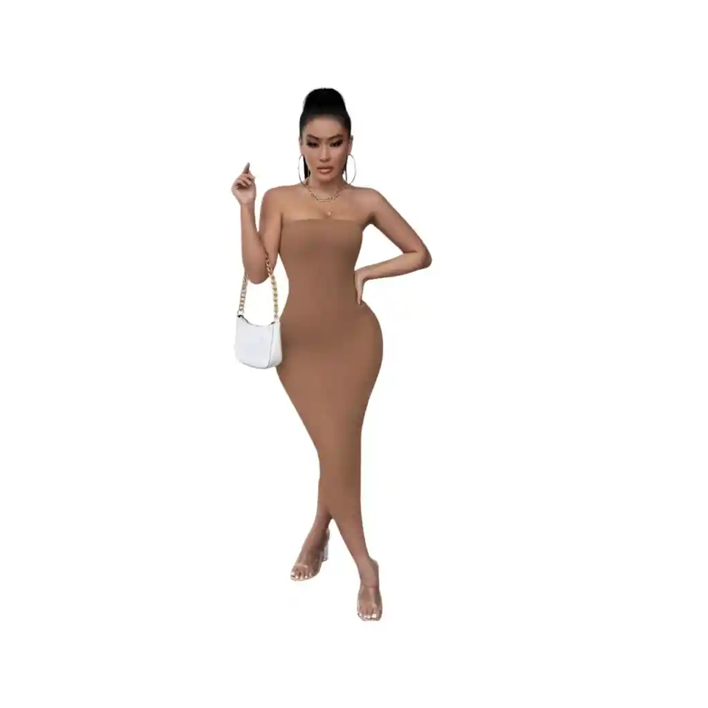 Vestido Largo Strapless – Silueta Elegante & Estilo Minimalista Resalta tu figura con este espectacular vestido largo strapless en tono beige caramelo, perfecto para lucir sofisticada en cualquier ocasión. Su diseño ajustado abraza la silueta de manera favorecedora, creando un efecto estilizado y femenino. Confeccionado en tela elástica, suave y de alta calidad, garantiza comodidad y un ajuste perfecto. Su estilo minimalista permite combinarlo con tacones, accesorios dorados o un bolso pequeño para lograr un look moderno, elegante y seductor. Ideal para cenas, fiestas, reuniones especiales o sesiones de fotos. Talla s