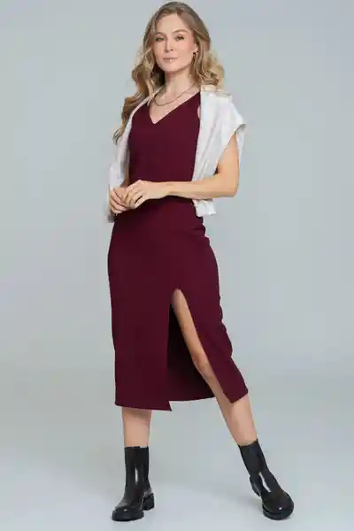 Vestido Punto Midi Color Rojo Vino Talla S Ragged