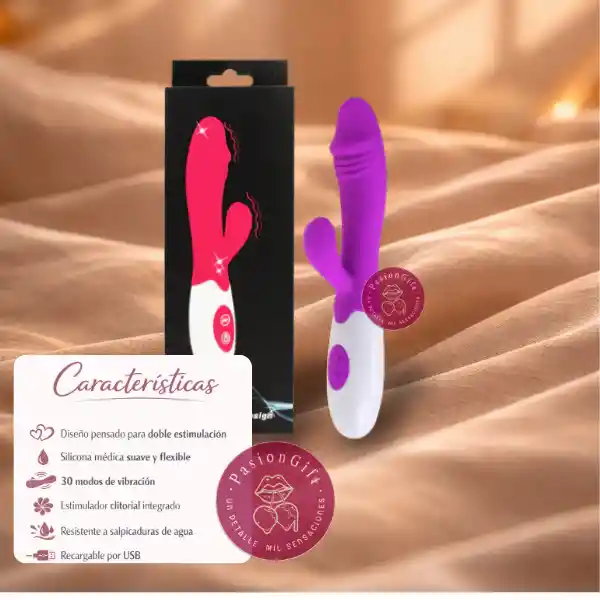 Vibrador íntimo diseñado para ofrecer estimulación versátil y múltiples sensaciones gracias a su estructura pensada para estimular diferentes zonas sensibles. Su diseño combina una cabeza más amplia para estimulación interna y una punta cónica que permite explorar otras áreas con comodidad. Fabricado en silicona médica suave y flexible, se adapta al cuerpo proporcionando una sensación agradable al tacto. Sus 30 modos de vibración permiten elegir entre diferentes intensidades y ritmos para una experiencia personalizada. Además, su sistema recargable por USB y su diseño resistente a salpicaduras lo convierten en un dispositivo práctico y fácil de usar. Características: • Diseño pensado para doble estimulación • Fabricado en silicona médica suave • 30 modos de vibración • Estimulador externo integrado • Resistente a salpicaduras de agua • Sistema de carga recargable por USB Especificaciones: • Largo total: 19 cm • Largo insertable: 7 cm • Ancho aproximado: 3 cm • Material: Silicona médica • Modos de vibración: 30 • Sistema de carga: USB Recomendación de uso: Para una experiencia más cómoda, se recomienda utilizar lubricante a base de agua y limpiar el producto antes y después de cada uso. Tipo: Vibrador íntimo recargable Distribuidor: PasionGift