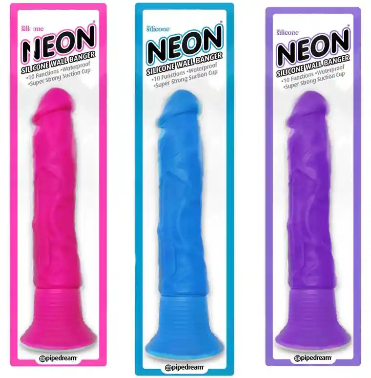 Deléitese con los placeres simples de un clásico! Con diez funciones de vibración, una potente base de ventosa y un diseño realista y resistente, ¡hay mucho que amar de este Neon Silicone Wall Banger! El botón inferior enciende el potente motor y el botón superior recorre diez funciones de placer intenso, mientras que el increíble agarre de la base de la ventosa mantiene el consolador en su lugar de forma segura, proporcionando una estimulación emocionante justo donde lo desea. Pegue el consolador en el piso, la pared, el poste de la cama o casi cualquier superficie plana para disfrutar de la satisfacción de golpear la pared con cada embestida apasionada. Y el Neon Silicone Wall Banger es convenientemente impermeable. Pruébelo en el spa o en la ducha y convierta la hora del baño en un momento de placer. Mide 17.5 cm de largo. 4 cm de diametro