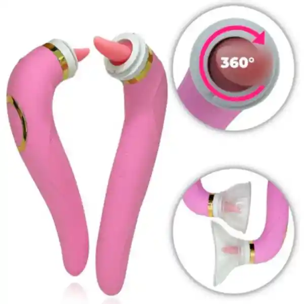 Recargable Estimulador Rotación 360° en la lengua 2 copas de succión 12 velocidades de vibración 12 frecuencias de succión Material ABS + silicona medica 25 CM X 4 CM