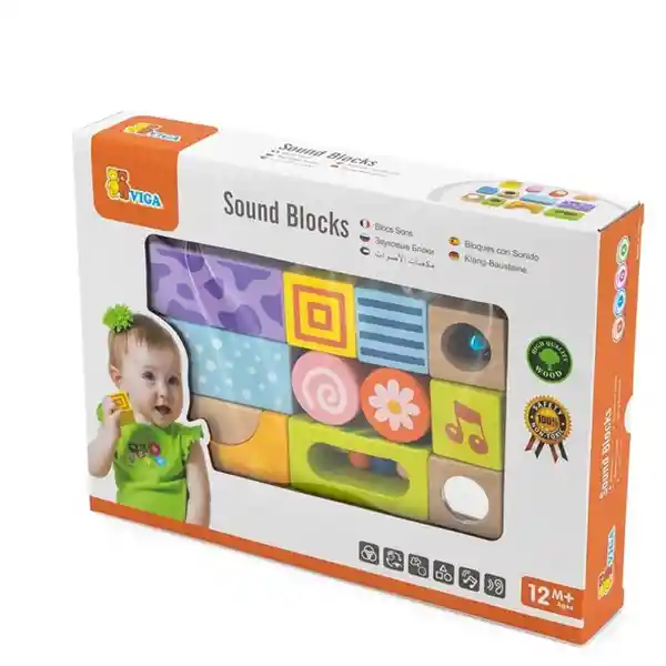 Contiene 12 Piezas. Bloques de Madera de Los Cuales 9 Incluyen Sonidos Internos Distintos. Con Colores Suaves y Bordes Redondeados Funcionan Como Juguete Sensorial Para Explorar Agitar Apilar y Escuchar. (Carrefour).
