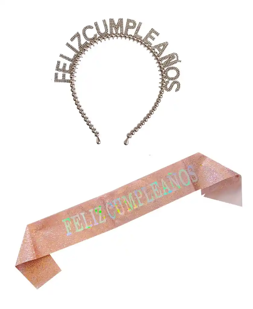 Vincha Diadema + Banda Feliz Cumpleaños Oro Rosa Banda Feliz Cumpleaños Con Letras Plateadas En Tornasol Diadema Feliz Cumpleaños Con Letras En Grabado De Puntos