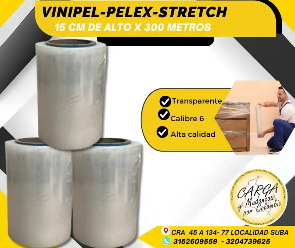 El Pelex transparente (también conocido como Vinipel Stretch o Stretch Film) es una película plástica transparente y resistente, que se utiliza en el embalaje y la logística para envolver y proteger productos. Su principal función es asegurar la carga en cajas y estibas, evitando movimientos durante el transporte y almacenamiento. - Protege los productos individuales, como cajas, paquetes o bultos. - Aporta mayor estabilidad y resistencia a la carga, reduciendo el riesgo de roturas o daños. - Aisla de la humedad, sol y polvo. Color: Transparente Medidas: 15 de alto x 300 mts de largo Alta Calidad - Producto Garantizado. Visítanos: Cr. 45a # 134 - 77 Local Esquina Contáctanos: 315 2609 559 *ASESORIA SIN COSTO POR WHATSAAP*
