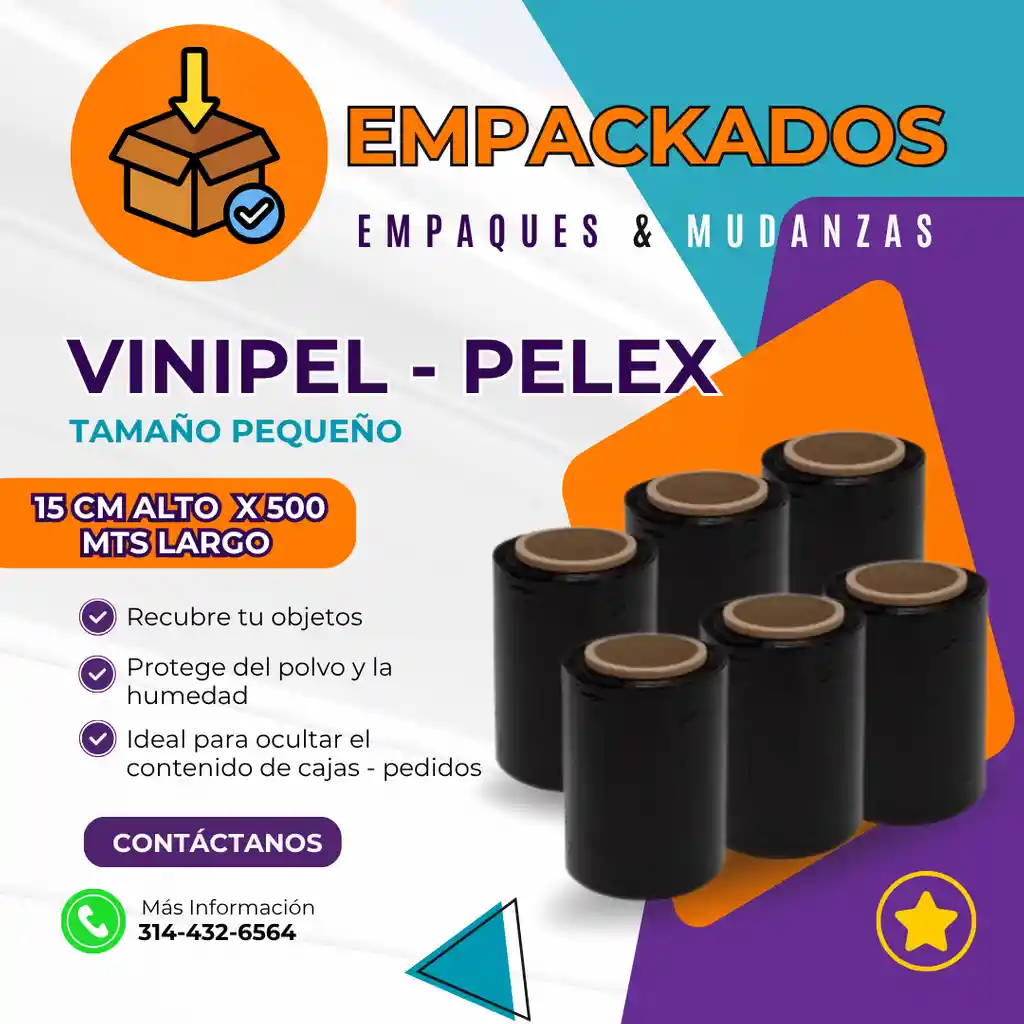 Vinipel - Pelex - Stretch Flim Negro 15 Cm X 500 Mts Largo - Empaques Para Mudanzas
