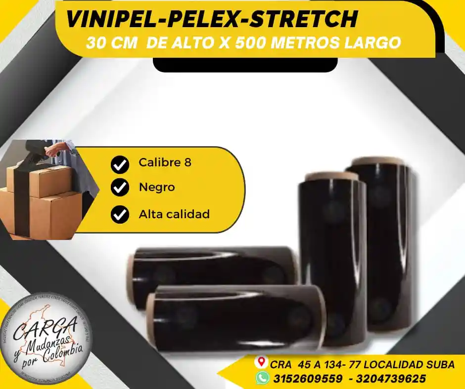 El Pelex transparente (también conocido como Vinipel Stretch o Stretch Film) es una película plástica transparente y resistente, que se utiliza en el embalaje y la logística para envolver y proteger productos. Su principal función es asegurar la carga en cajas y estibas, evitando movimientos durante el transporte y almacenamiento. - Protege los productos individuales, como cajas, paquetes o bultos. - Aporta mayor estabilidad y resistencia a la carga, reduciendo el riesgo de roturas o daños. - Aisla de la humedad, sol y polvo. Color: NEGRO Medidas: 30 cm de alto x 500 mts de largo Alta Calidad - Producto Garantizado. Visítanos: Cr. 45a # 134 - 77 Local Esquina