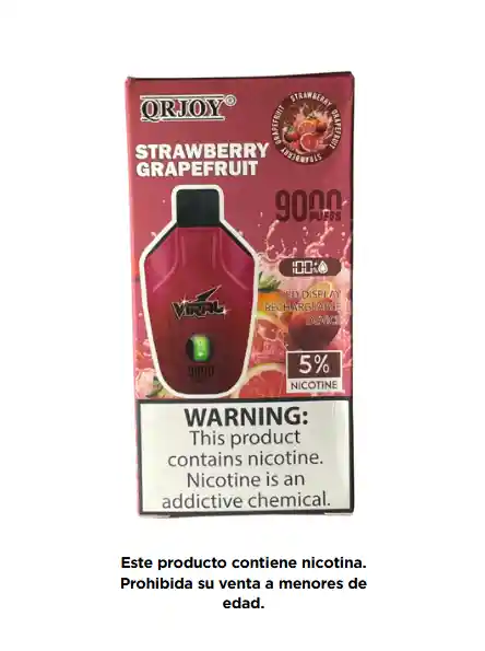 VAPEADOR VIRAL 9.000 VAPEADAS SABOR GRAPE RAZZ ICE. ESTE PRODUCTO CONTIENE NICOTINA UNA SUSTANCIA ADICTIVA, ES PERJUDICIAL PARA LA SALUD, PROHIBIDA SU VENTA A MENORES DE EDAD.