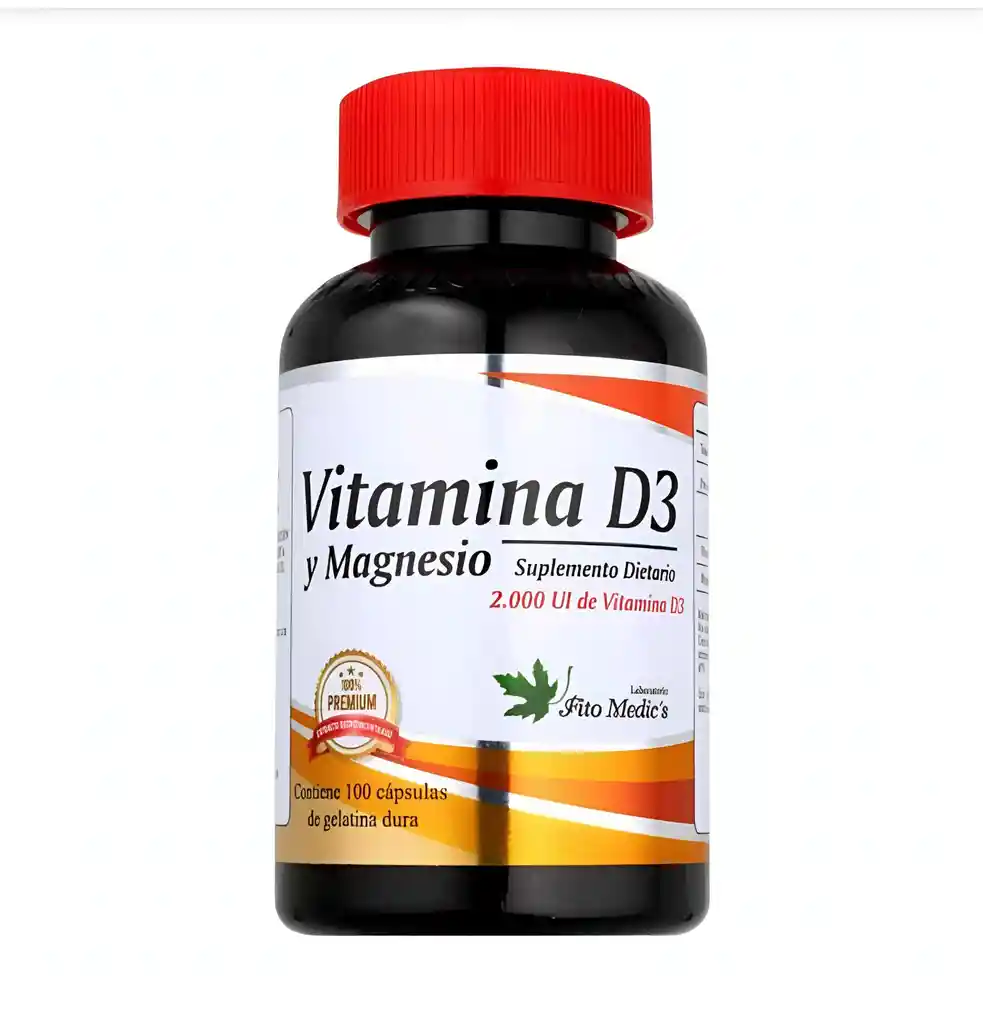 Vitamina D3 2000iu con Magnesio x 100 capsulas Laboratorio Fitomedics No exceder su consumo No es un medicamento y no suple una alimentacion balanceada