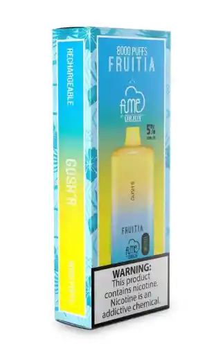 ¡Explota de Sabor con el Fume Fruitia Gush R 8000: Tu Vape Explosivo! ¿Listo para una ráfaga de frutas que te dejará sin aliento? El Fume Fruitia Gush R 8000 es el disposable recargable que redefine el vapeo con explosiones frutales irresistibles. Colaboración premium entre Fume y Fruitia, este dispositivo te ofrece comodidad total, rendimiento duradero y sabores que gush (¡chorrean!) de frescura. ¡Eleva tu rutina diaria a un festín de vapores intensos! ¿Por qué el Fume Fruitia Gush R 8000 es tu próximo must-have? Hasta 8000 caladas épicas: Con 18 ml de e-líquido premium y una batería recargable de 700 mAh (USB-C), vapea sin interrupciones por semanas. Sabores que estallan en tu paladar: El Gush R destaca con mezclas frutales jugosas como Gushers Berry o Fruit Gush, junto a 14 opciones más (¡incluyendo Blue Slushy, Bomb Pop y Melon Berries!) – todos con 5% de nicotina salada para un hit suave y satisfactorio. Diseño inteligente y portátil: Compacto, ergonómico y con pantalla LED que muestra batería y nivel de jugo – evita sorpresas y mantén el control total. Bobina de malla avanzada: Sabor puro y nubes densas en cada puff, gracias a su tecnología de malla que maximiza el flujo de aire. Sin complicaciones, solo placer: Desechable pero recargable, listo para usar al instante – ideal para viajes, breaks o noches de relax. Tu compañero perfecto en cualquier aventura Imagina vapear en el gym, en la oficina o de fiesta: el Fume Fruitia Gush R cabe en tu bolsillo, se recarga rápido y entrega consistencia imbatible. Su construcción ligera y glossy lo hace tan estiloso como funcional, con un mouthpiece suave que se siente premium. ¡No esperes más – haz que cada puff cuente! Únete a los vapers que ya están enganchados al Fume Fruitia Gush R: calidad superior, durabilidad extrema y sabores que no se apagan. A un precio que no creerás, es la inversión perfecta para tu placer diario. ¡Elige tu Gush y explota de sabor hoy! Fume Fruitia Gush R 8000: Donde las frutas gush y el vapeo conquista.