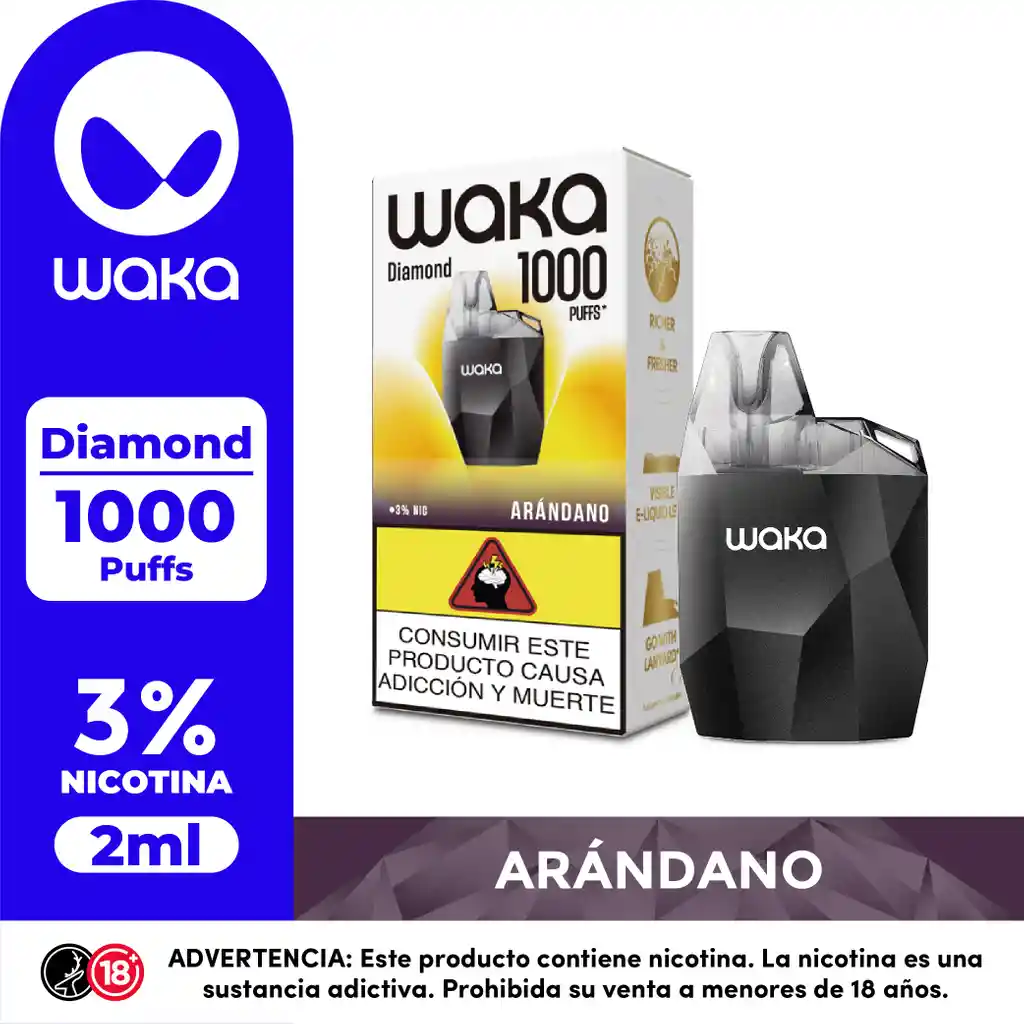 ¿Cómo pedir Waka Vapeador Mini Diamond Blackberry Blueberry 3% 1000 Puff en Rappi?