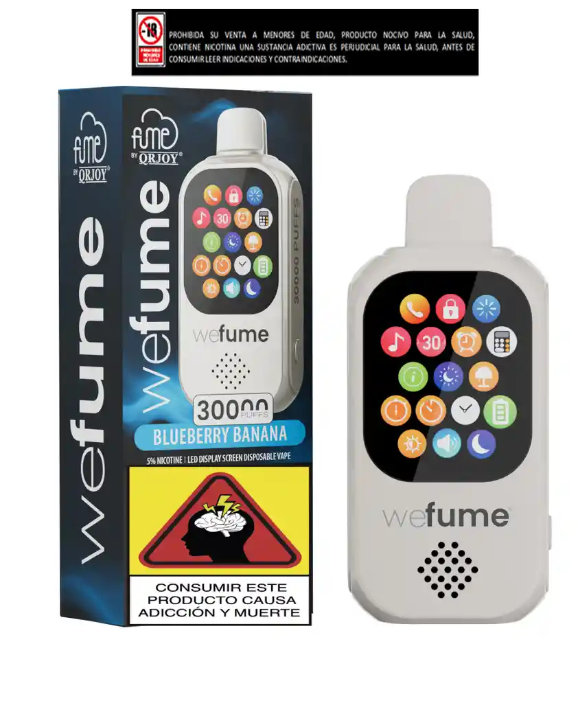 "¡Bienvenido al futuro del vapeo! Con el nuevo we fume de 30,000 vapeadas, tu experiencia va más allá del sabor. Equipado con reproductor de música, calculadora, despertador, ¡y hasta la capacidad de contestar llamadas! Es mucho más que un vapeador: es tu compañero todo-en-uno. ¿Estás listo para revolucionar la manera en que disfrutas cada calada? we fume, mucho más que vapor." Este producto contiene nicotina de 5mg, es una sustancia adictiva, perjudicial para la salud, prohibida su venta a menores de edad, antes de consumir leer indicaciones y contraindicaciones.