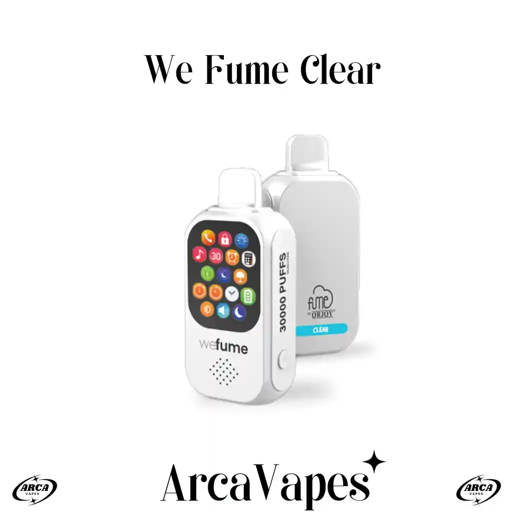 💨 Rendimiento Superior: Hasta 30.000 puffs reales con 19 ml de e-liquid nic salt al 5% (50 mg/ml), para varios días de uso intensivo con vapor limpio y consistente. 💨 Clear – Sabor: Opción sin saborizantes añadidos, ofreciendo una experiencia de vapeo pura, limpia y neutra, ideal para quienes prefieren el gusto natural del vapor sin notas frutales, mentoladas o dulces, enfocada en la simplicidad y frescura básica. ⚙️ Tecnología Real del WeFume 30K Smart 30K puffs con activación automática MTL para caladas suaves. 19 ml e-liquid prellenado 5% nic salt. Batería 750 mAh recargable USB-C. Pantalla táctil inteligente personalizable vía app móvil para fondos, fotos y control total (música, llamadas, reloj, alarma, calculadora, linterna, 16 apps Bluetooth). Flujo de aire ajustable + modos de potencia para personalizar tu experiencia. 🎁 Incluye Exclusivo – Condición de Garantía Vape WeFume 15K de regalo: Perfecto como backup o para compartir, sin garantía (solo el principal 30K cubierto por políticas del proveedor).