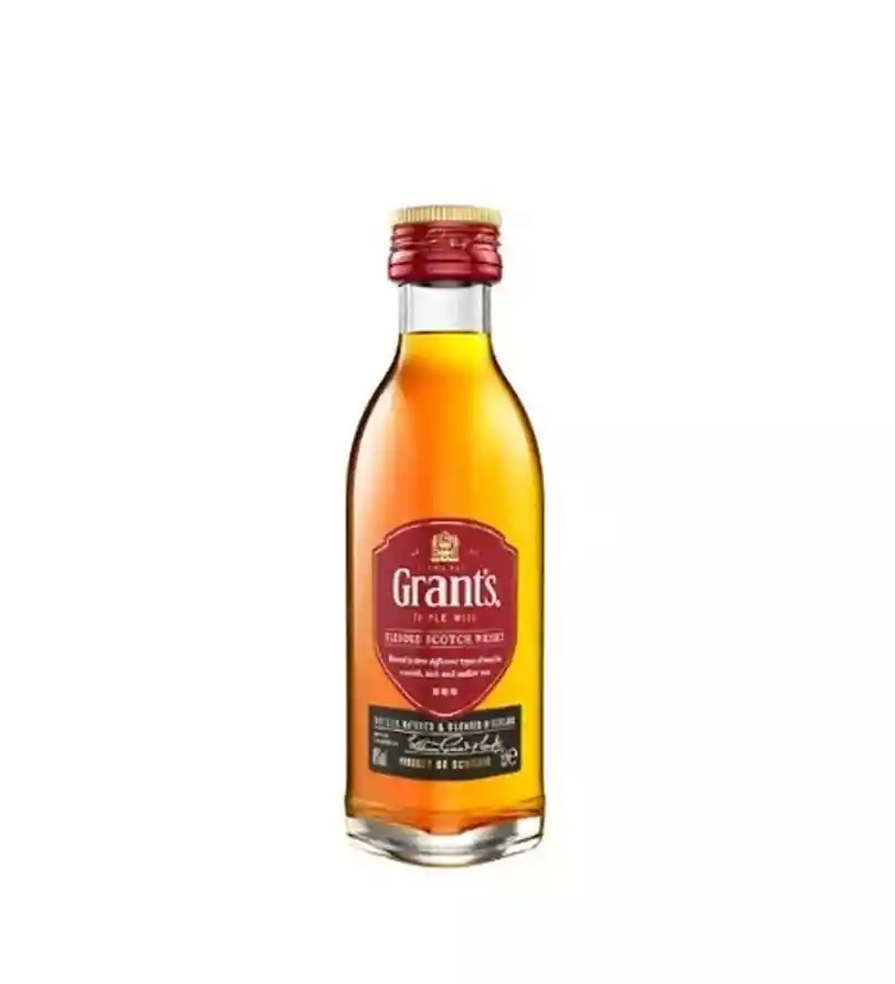 Whisky Grant’s Triple Wood 50 ml Blended Scotch Whisky madurado en tres tipos de barrica, que aporta suavidad y equilibrio. Presenta notas de vainilla, miel, frutas maduras y un toque especiado. Ideal para disfrutar solo, con hielo o en coctelería, en práctico formato mini.