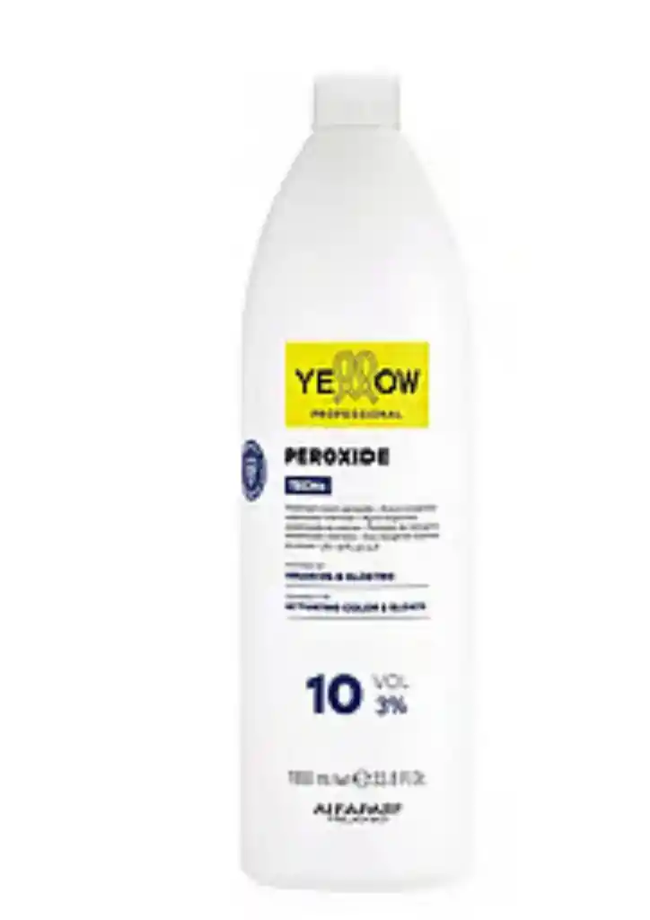 El Peróxido Yellow de 10 volúmenes es una crema oxidante estabilizada de baja graduación, diseñada para servicios técnicos que requieren precisión cromática sin alterar la base natural del cabello. Su función principal es activar los pigmentos del tinte para que se depositen en la fibra capilar, siendo la elección ideal para oscurecer, mantener el mismo tono o realizar matizaciones perfectas tras una decoloración.El Especialista en Matización y BrilloAl tener una baja concentración de oxígeno, este peróxido es el más gentil con la cutícula, lo que ofrece ventajas únicas:Tono sobre Tono: Ideal para clientes que desean refrescar su color actual sin aclarar su base natural.Matización de Mechas: Es el compañero perfecto para aplicar toners o matizantes en cabellos decolorados, evitando que el color "vire" o se vuelva agresivo.Cobertura de Canas Mínima: Se utiliza en casos donde hay muy pocas canas y se busca un resultado extremadamente natural y suave.Beneficios PrincipalesRespeto Máximo por la Fibra: Al abrir mínimamente la cutícula, el cabello conserva mejor su hidratación y estructura natural.Fórmula con Aloetrix: Gracias al complejo de Aloe Vera y Germen de Trigo, el cuero cabelludo se siente confortable y el cabello queda suave.Brillo con Aceite de Argán: Ayuda a que la superficie del cabello refleje la luz de forma espectacular tras la aplicación.Textura Cremosa Estabilizada: Garantiza una mezcla homogénea que no se escurre, permitiendo una aplicación exacta en técnicas de diseño.Modo de Uso (Técnico)Proporción de Mezcla: Generalmente $1:1,5$ (ej. 100 ml de tinte + 150 ml de peróxido).Tiempo de Pose: Varía entre 20 y 35 minutos, dependiendo de la intensidad del depósito de color deseada.Uso Recomendado: Para baños de color, matices de rubios o para oscurecer cabellos previamente aclarados.Especificaciones y Datos TécnicosConcentración: 3% (10 volúmenes).Poder de Aclaración: Nulo o mínimo (0 tonos).Dermatológicamente Testeado: ✅ Sí, es el volumen más suave para el cuero cabelludo.Libre de Gluten: ✅ Sí, seguro para personas celíacas.Libre de Crueldad: ✅ Sí, no testeado en animales.Presentación: Botella de 1000 ml para uso profesional.¿Cuándo elegir 10 Volúmenes?Si tu cliente quiere cubrir canas de forma total o aclarar su base, deberás optar por 20 Volúmenes. Si el objetivo es dar brillo, matizar un rubio platino o refrescar un color de medios a puntas, el de 10 Volúmenes es la herramienta profesional correcta. Running Shopping, Somos especialistas en Belleza ; productos 100% Originales , garantizados y entregas rapidas !