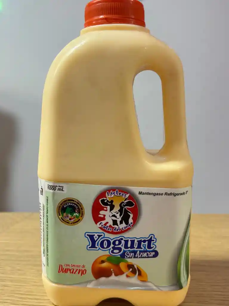Yogurt Artesanal con trozos de fruta real 100% sabor a DURAZNO sin dulce de 1000ml