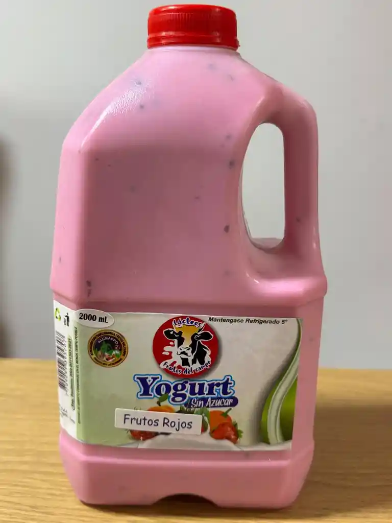 Yogurt Artesanal con trozos de fruta real 100% sabor a FRUTOS ROJOS (Fresa, Mora y Arándanos ) sin dulce de 2000ml