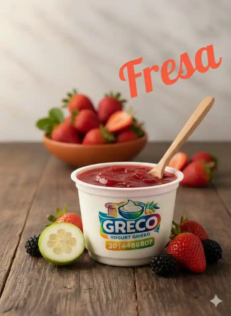 Yogur griego 100% orgánico con cultivos lácticos y probióticos con mermelada de fruta, cremoso y natural.