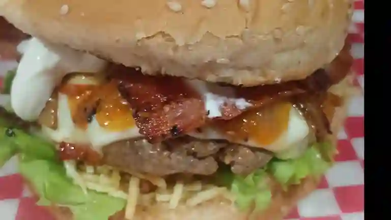 Pan artesanal . carne de res . cebolla grillet . maiz tirmerno . tocineta. quezo . papa francesa . coca cola