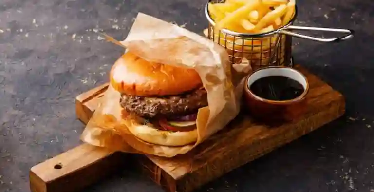 Pan brioche con queso, carne de hamburguesa 150gr, queso mozarella , lechuga crespa, tomate rojo, cebolla caramelizada, salsa de tomate, salsa tártara, salsa mostaza, salsa rosada o salsa de maíz.