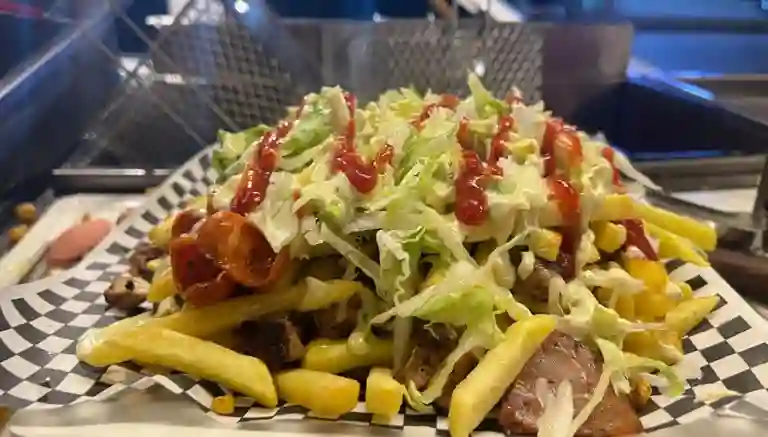 Salchicha, chorizo, butifarra, pollo, carne, queso, lechuga, papa ripio, salsas.