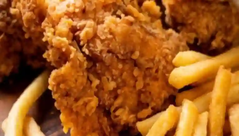 Pechuga de pollo empanizada, jugosa y crujiente por fuera.