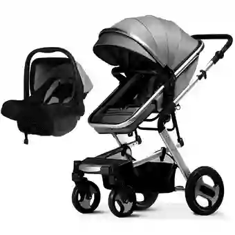 Coche Tipo Moises Paseador Fino Silla Carro Porta Bebe + Toldillo Gris