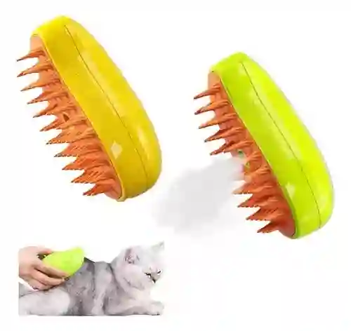 3 En 1 Cepillo De Vapor Para Perro Masaje Peine Para Gatos Color Amarillo